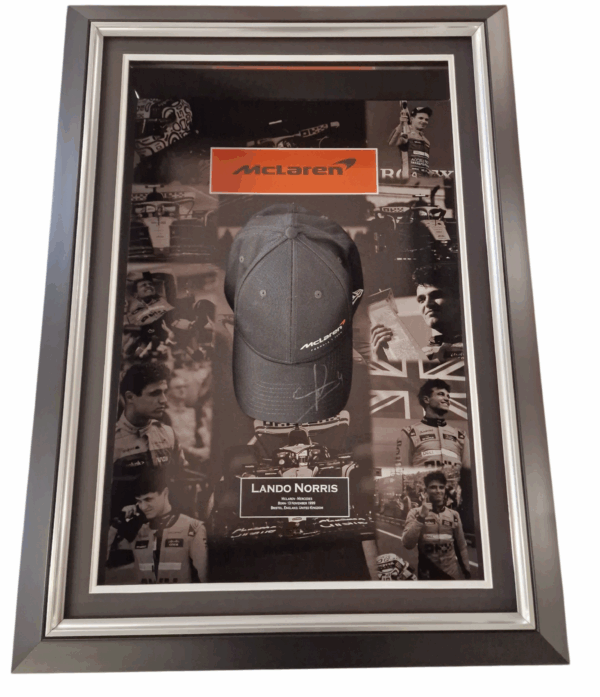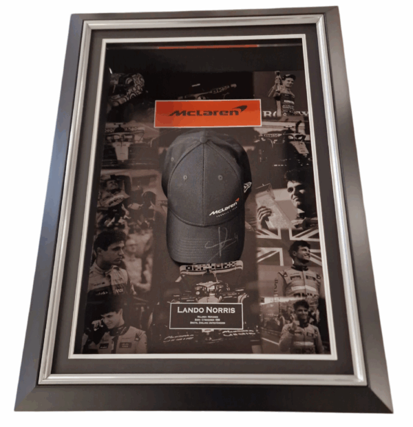 Oprawiona czapka z autografem Lando Norrisa